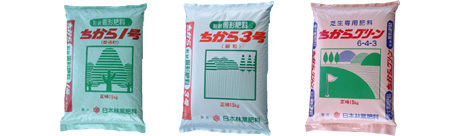| ちからグリーン | 6 | 4 | 3 | 15kg ポリ | 1〜3 | 芝生 |